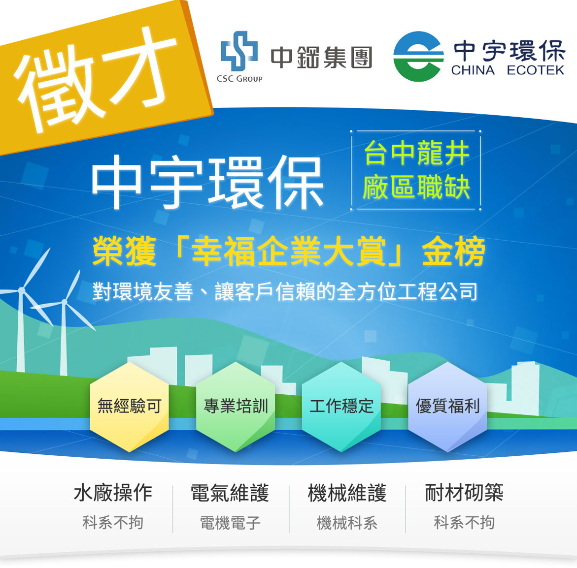 臺中職缺 -駐廠於中龍鋼鐵(臺中龍井)
